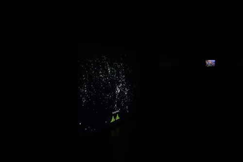 A childhood memory of picking up stones along a river is remixed. Digital aggregates are reformed to recover what was lost. A figure continually dances in the sea at night, before gradually degrading into pixels. Gentle yet prodding encounters with familiarly rendered spaces, such as aquariums, tunnels and galaxies tease out their relationship to the viewer, overlapping in both time and space. Wang constructs a digital green screen, an (un)necessary and anomalous zone that emphasizes the illusionary power of digital space-time.